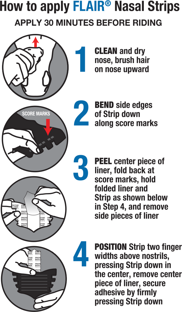 For best results, apply FLAIR Strips at least 30 minutes prior to exercise, riding or any other activity that may cause the horse to sweat.
